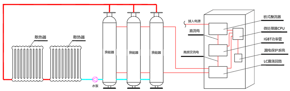 电磁炉是一种采用电磁原理,利用磁力线切割金属发生涡流所产生的热能作为热源,通过热量散发系统(如水暖系统),已达到取暖目的热量发生设备。电磁加热是电加热的一种,相对来讲,对技术人员的要求更高。电磁加热根据其频率的大小、用途的范围、设计的选材等又有所区分。 变频电磁感应加热技术的原理:通过整流电路将交流电整流变成直流电,再将直流电转换成频率为20-40KHz的高频电流。当高频电流通过电磁感应圈时会产生强烈的磁场。当磁场中的磁力线通过被加热的金属容器,并且和感应线圈有一定的距离时,就会在金属表面产生强大的涡流,使容器本身快速加热,并迅速提高容器内水的温度,以达到加热的目的。 |