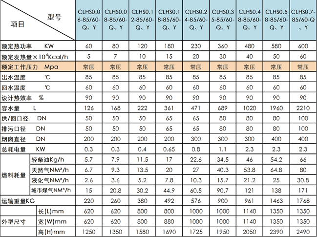 CLHS系列立式燃油(气)常压热水锅炉结构紧凑,炉体设计优化,受热面极大,热效率高,升温快,配置优质燃烧器,燃料燃烧充分,噪音低,各项环保指标均符合国家要求。外观造型新颖,色泽明快、优雅。整体布置紧凑,占地面积少,锅炉安装方便快捷。根据锅炉主要制作材料的不同,分为碳钢和碳钢镀锌两种。 |